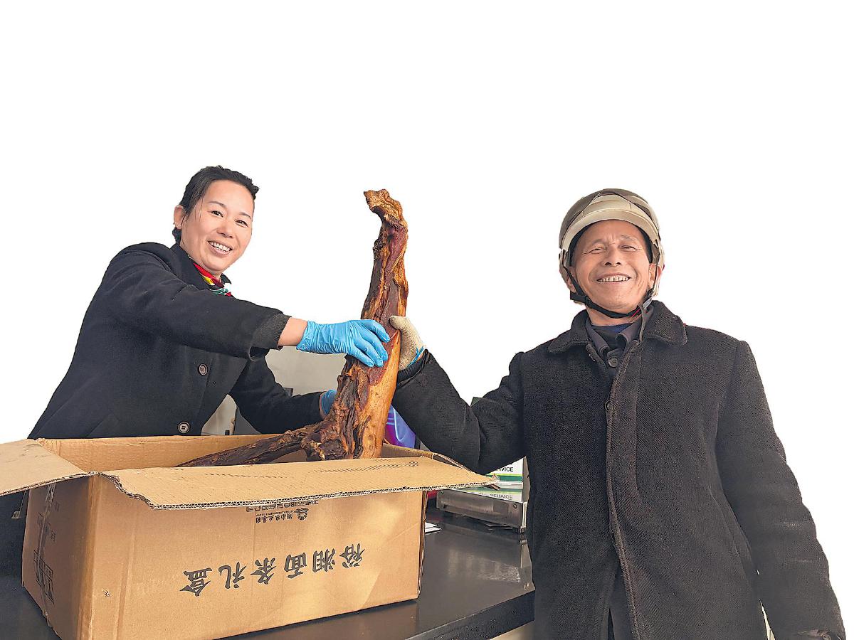 村民在大栗港支局寄出腊肉。□张明月 摄