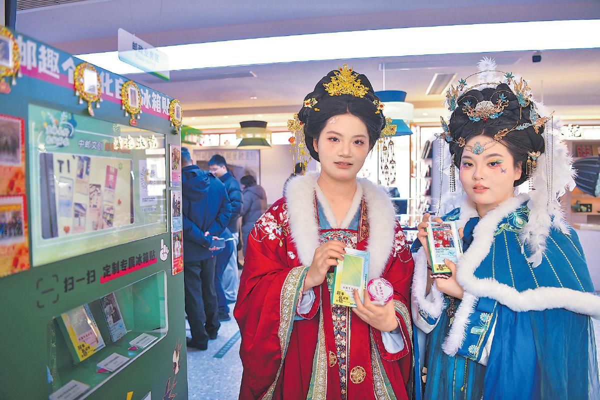 洛阳街头的“汉服巴士邮局”,更让文化体验多了流动之美。这个洛阳邮政首创的移动主题空间,融合汉服妆造、专业摄影、邮政服务、文创销售,节假日穿梭在洛邑古城、洛阳博物馆等景区,变“等客来”为“追客去”。游客李萌萌偶遇后,换上宋制汉服拍摄写真,还买了牡丹文创徽章:“既能体验汉服,又能买文创、寄快递,十分贴心。”这辆巴士也成为古都街头一道独特的风景线。