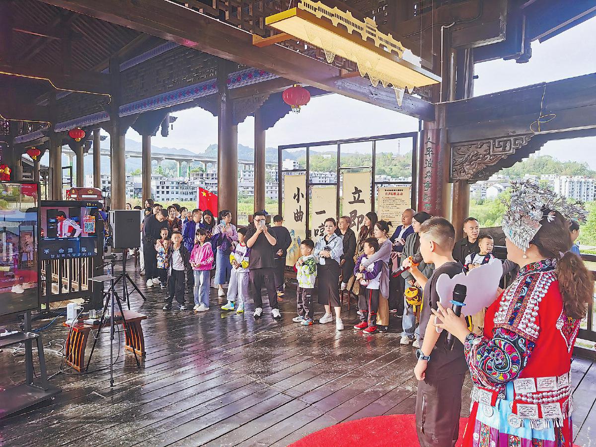 濯水风雨廊桥免费歌唱活动引来游客驻足。 □白芹芹 摄