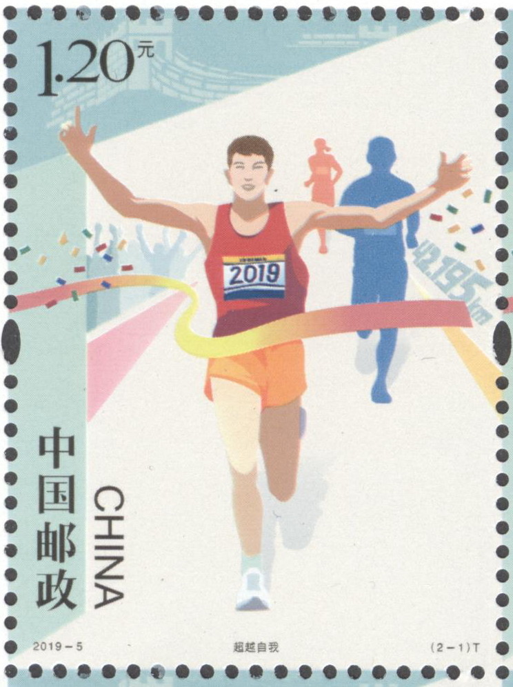 中国邮政定于2019年3月31日发行《马拉松》特种邮票1套2枚,邮票图案名称分别为:超越自我、跑向健康,全套邮票面值为2.40元。