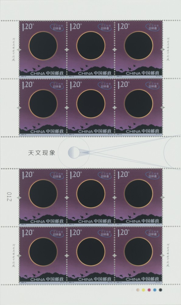 中国邮政定于2020年6月21日发行《天文现象》特种邮票一套5枚。全套面值6.60元。计划发行量为830万套。