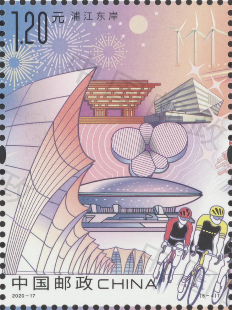 中国邮政定于2020年7月20日发行《新时代的浦东》特种邮票一套5枚,全套邮票面值为6.00元,邮票计划发行量660万套。5枚邮票名称分别为:中国(上海)自由贸易试验区、张江科学城、陆家嘴金融城、浦江东岸、洋山港。